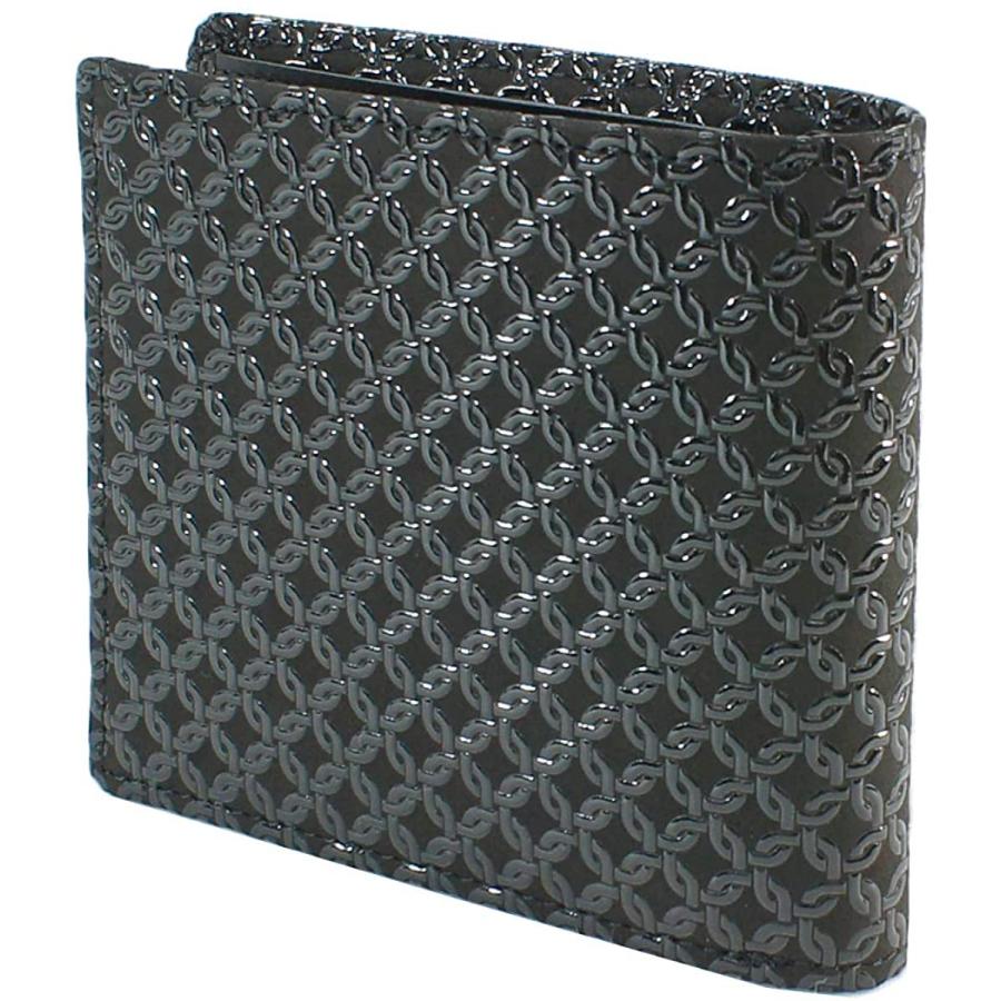 日本全国送料無料 印傳屋 印伝 二つ折り財布 札入f 小銭入れ無し 黒地 黒漆 輪繋ぎ小柄 09 01 177 最先端 Clinilab Net